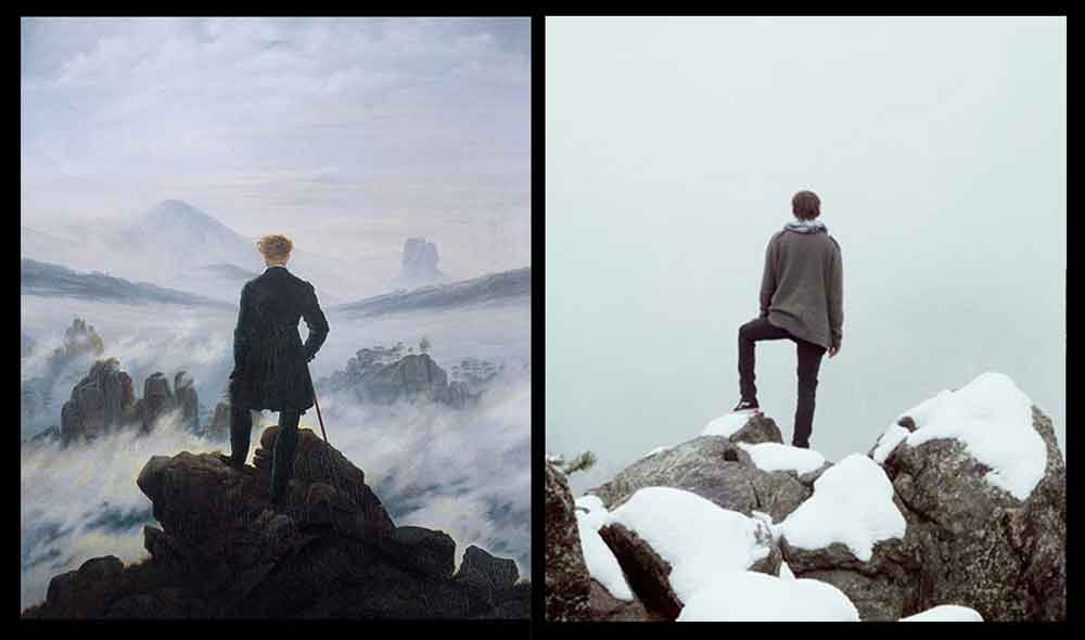Kein anderes werk caspar david friedrichs wird so häufig reproduziert oder aufgegriffen und in immer neuen variationen als ausgangspunkt für bilderfindungen gewählt. . Der wanderer über dem nebelmeer, 1818 von friedrich, caspar david, bildreferenz: